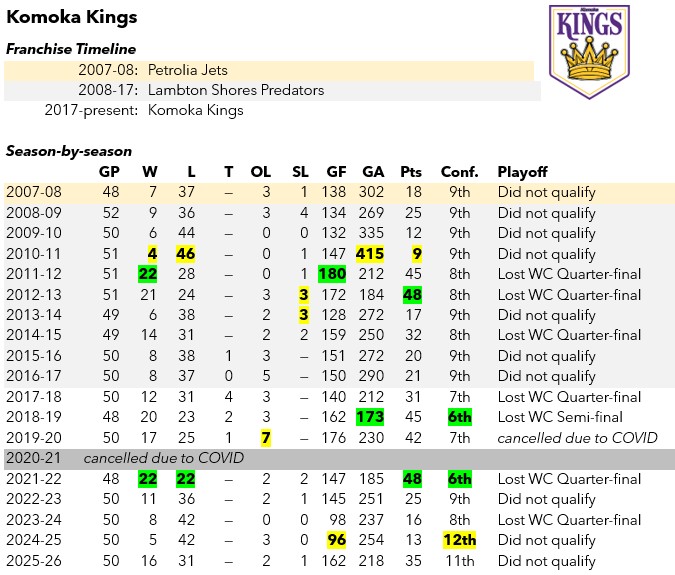 Fastest goal – start of third period: 7 seconds Colsen Joyce (Oct.5, 2025 vs Chatham)