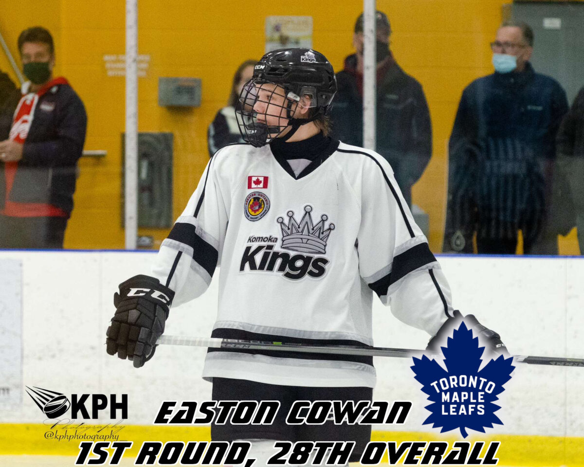 Cowan being selected in the first round makes him the highest draft choice among Komoka Kings Alumni, as this marks the second consecutive season where former Kings players have been selected in the NHL Draft (Christian Kyrou, Bryce McConnell-Barker and Isaiah George in 2021).